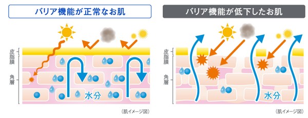 バリア機能が正常な肌は十分水分を保つことができ、外部からの刺激を受けにく状態ですが、