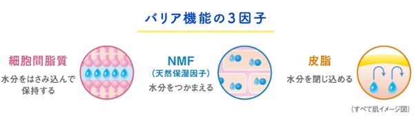 バリア機能をスキンケアで正常な状態にするには、重要な3因子があります。
